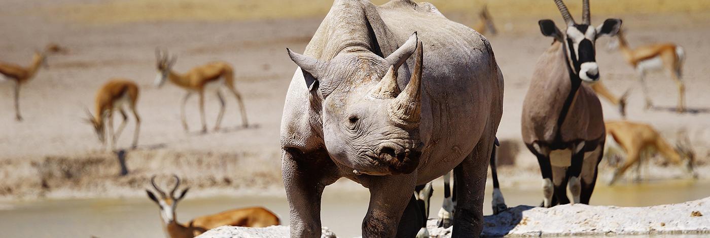 Pequeno-almoço. Dia dedicado à abundante vida selvagem encontrada no Parque Nacional Etosha, que rodeia um deserto salgado árido conhecido como Etosha Pan. Proclamado a primeira área de conservação da Namíbia em 1907 pelo então governador von Lindequist, este é lar de 4 dos “Big Five” - elefante, leão, leopardo e rinoceronte. Apesar da sua extensão, apenas uma parte do parque está acessível aos visitantes. A principal observação de animais ocorre em torno dos bebedouros, onde é possível ver mais de 114 espécies e, para os amantes de aves, é possível encontrar mais de 340 espécies. Alguns dos animais mais comuns que podemos observar incluem a girafa, zebra, hiena, leão, leopardo e antílopes, além de espécies ameaçadas, como o rinoceronte negro, guepardo e impala de face negra. Uma extensa rede de estradas liga os mais de 30 bebedouros, permitindo aos visitantes a oportunidade de fazer um safari completo de observação de animais por todo o parque, já que cada área diferente proporciona encontros variados. (Opção + Refeições: Jantar). Alojamento.