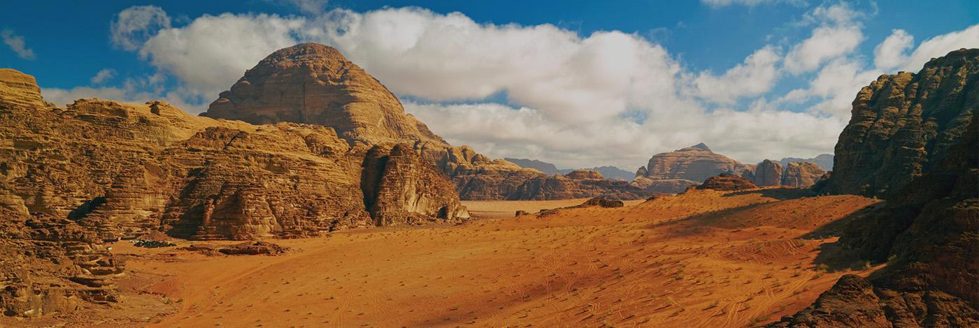 Pequeno-almoço. Saída em direção a Siq al-Barid, a “Pequena Petra”. Supõe-se que este desfiladeiro de cerca de 2 metros de largura e com típica arquitetura nabateia servia como centro agrícola, entreposto comercial e ponto de paragem das caravanas de camelos que se dirigiam a Petra. Deixando este lugar pitoresco de grande valor arqueológico para trás, a viagem continua até Wadi Rum, o deserto de Lawrence da Arábia. Chegada e realização de um passeio em veículos 4x4 (2 horas de duração), conduzidos por beduínos, para descobrir este deserto de areias avermelhadas e montanhas douradas. Uma paisagem lunar onde poderá observar monumentais “esculturas” rochosas feitas pela natureza. Jantar e alojamento num acampamento beduíno.