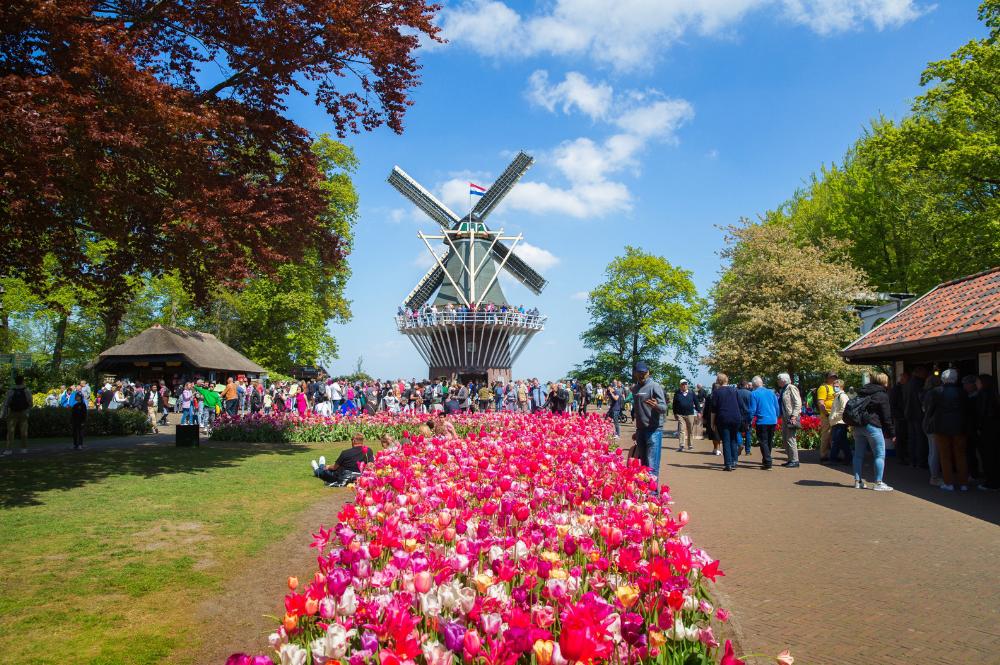 Pequeno-almoço. Saída para o Parque floral de Keukenhof. Com os seus 28 ha, este é um dos pontos altos desta viagem, pois é a montra dos horticultores holandeses que, com cerca de 7 milhões de plantas de bolbo, conseguem cultivar um dos jardins de flores mais espectaculares do mundo. Visita livre com entrada incluída. Almoço. Partida para Haia, visita a pé cidade, com destaque para o Binnenhof, o Parlamento Holandês, edifício histórico inserido no centro da cidade, onde o contraste entre os edifícios antigos e modernos é contextualizado de forma harmoniosa. Continuação pelo Palácio da Paz onde está instalado o Tribunal Internacional até à praia de Schevenigen, provavelmente a mais famosa praia do Mar do Norte. Visita do Parque Madurodam, uma cidade em miniatura que lhe dará a conhecer a arquitetura e as tradições de várias regiões holandesas. Continuação da viagem para Roterdão. Jantar e alojamento.