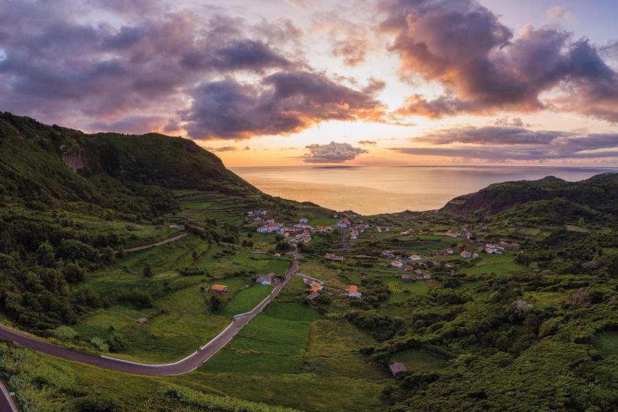 A Ilha das Flores é parte do grupo ocidental e é conhecida também por ser a Ilha Rosa. É aqui que fica situado o ponto mais ocidental do território português – no Ilhéu de Monchique. O lugar considerado o mais bonito da ilha é o Poço da Ribeira do Ferreiro. Após um percurso de 30 minutos a pé, encontra um cenário de natureza e beleza natural incomparável. Está perante várias cascatas que caem sobre as dezenas de metros da verdejante montanha. É um verdadeiro paraíso! Uma paisagem singular nas Flores é a Rocha dos Bordões. Constitui-se como uma rocha de grandes dimensões com prismas basálticos. Uma maravilha da Mãe-Natureza. Não pode perder a vista para a Lagoa Comprida e a Lagoa Escura através dos seus miradouros. Daqui consegue contemplar as duas lagoas ao mesmo tempo. O Poço do Bacalhau, uma queda de água surpreendente na Fajã Grande, é um lugar de visita obrigatória. Quando falamos de gastronomia da Ilha das Flores, os pratos mais tradicionais são a sopa de agrião e o inhame com linguiça. Na ilha também é produzido um tipo de queijo curado de pasta mole de textura firme. O peixe também é um ingrediente fundamental da gastronomia da ilha. São de destacar a albacora assada no forno e a caldeirada de congro.