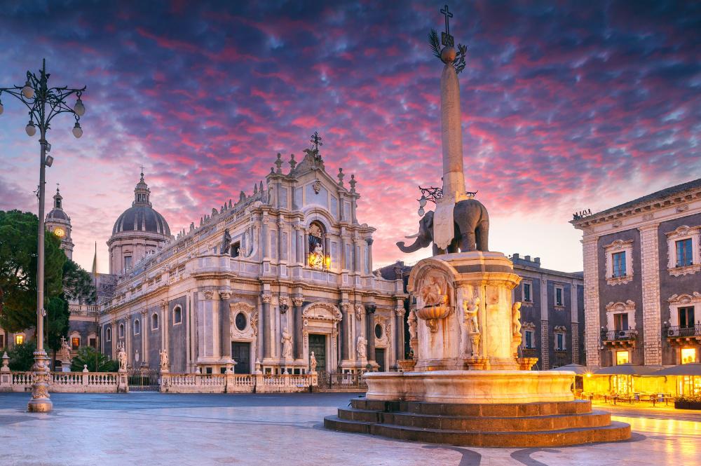 Comparência em hora e local a indicar para transporte em autocarro para o aeroporto, onde deve comparecer 150 minutos da partida. Formalidades de embarque e saída em voo com destino a Catânia. Chegada, assistência e transfer para o hotel. Jantar e alojamento.
