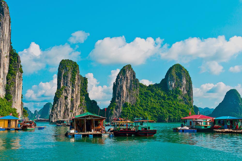 Pequeno-almoço. Partida em direção a Halong Bay (165 km, 3 horas e meia de viagem) ou Baía de Lan Ha (faz parte da baía de Halong), Património da Humanidade e cenário de grande beleza natural. De acordo com uma de muitas lendas, os milhares de monólitos de calcário foram cuspidos por uma família de dragões para ajudar a defender o país da invasão dos chineses. Durante o trajeto, aprecie uma paisagem composta por terras agrícolas do delta do Rio Vermelho, búfalos de água e campos de arroz, exemplos da vida rural do Vietname. Chegada à “Baía onde desceu o Dragão” e embarque num tradicional junco de madeira (embarcação típica) com almoço a bordo. O cruzeiro atravessa a baía, navegando entre ilhotas de formas características e cobertas de vegetação: Ilha da Tartaruga, Ilha do Cão, Ilha da Cabeça de Homem, entre outras. Tarde livre para relaxar com possibilidade de, caso a meteorologia o permita, tomar um banho nas águas verde-esmeralda da baía. Jantar e alojamento a bordo.
